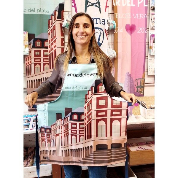 DELANTAL para adulto confeccionado en tropical mecánico sublimado, con tiras para atar y cinta regulable en el cuello.